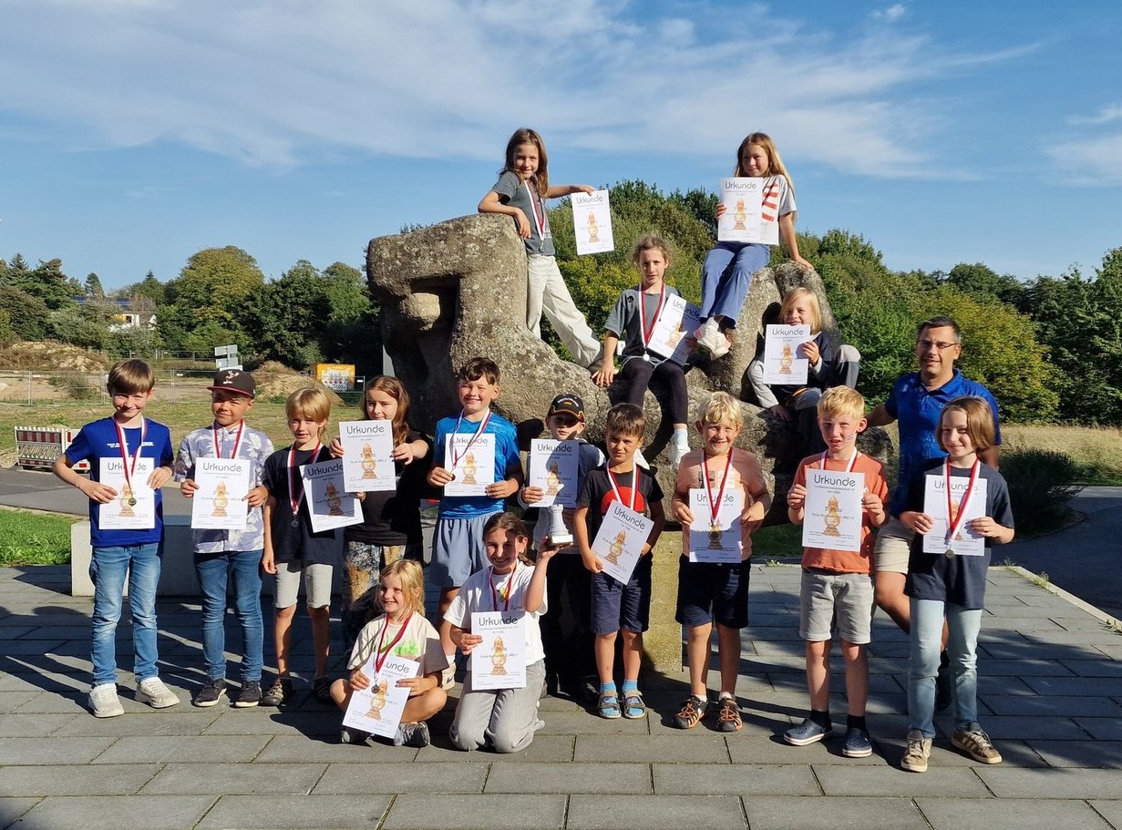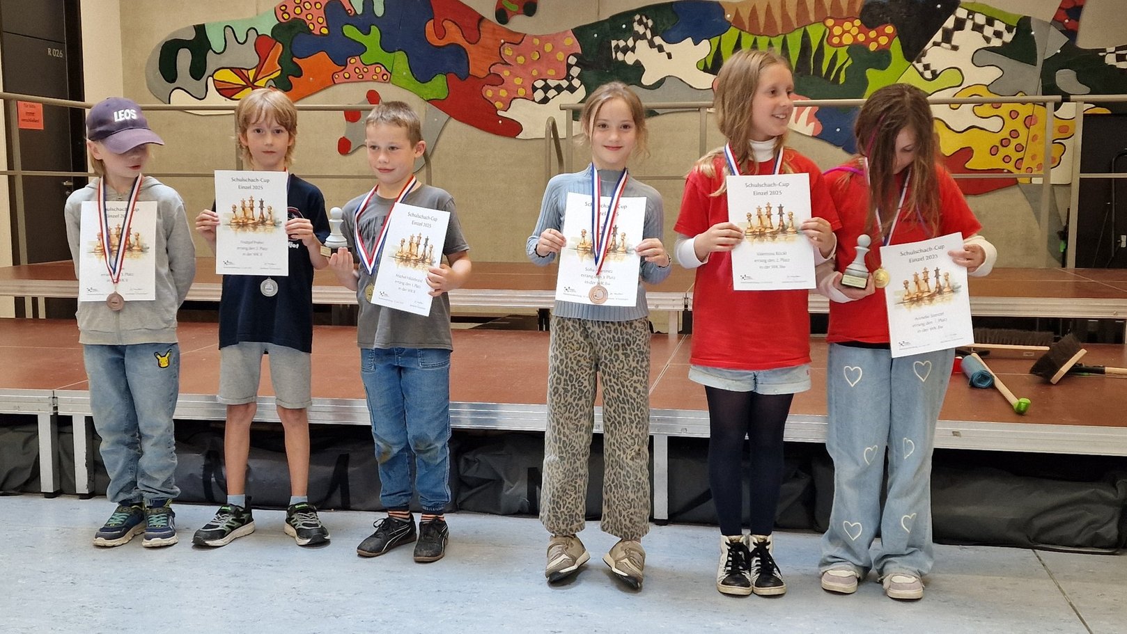 20.09.2025: Was für ein spannender Schachsamstag in Schwerin. 16 Mädchen und Jungen der beiden jüngsten Altersklassen u8 und u10 nahmen am Samstag an den Vereinsmeisterschaften der Schachjugend in Schwerin teil. Eigentlich wollte man vor allem den Titel in der u8 verteidigen. Aber es kam ganz anders. Noch mit Anlaufschwierigkeiten steigerte sich das erste u10-Team und holte sich tatsächlich den Gesamtsieg und die Qualifikation für die Deutschen Vereinsmeisterschaften. Dabei waren vor allem die letzten beiden Runden mehr als spannend und als Außenstehender konnte man nur staunen, wie "cool" die Kinder spielten. So war es auch zu verschmerzen, dass das u8-Team „nur“ den Vizemeistertitel nach Hause brachte und auch das zweite u8 Team auf dem Podestplatz landete. Alle Kinder zeigten tolle Leistungen und, dass sie das, was sie im Training lernen, auch umsetzen können. Somit gab es einen kompletten Medaillensatz.