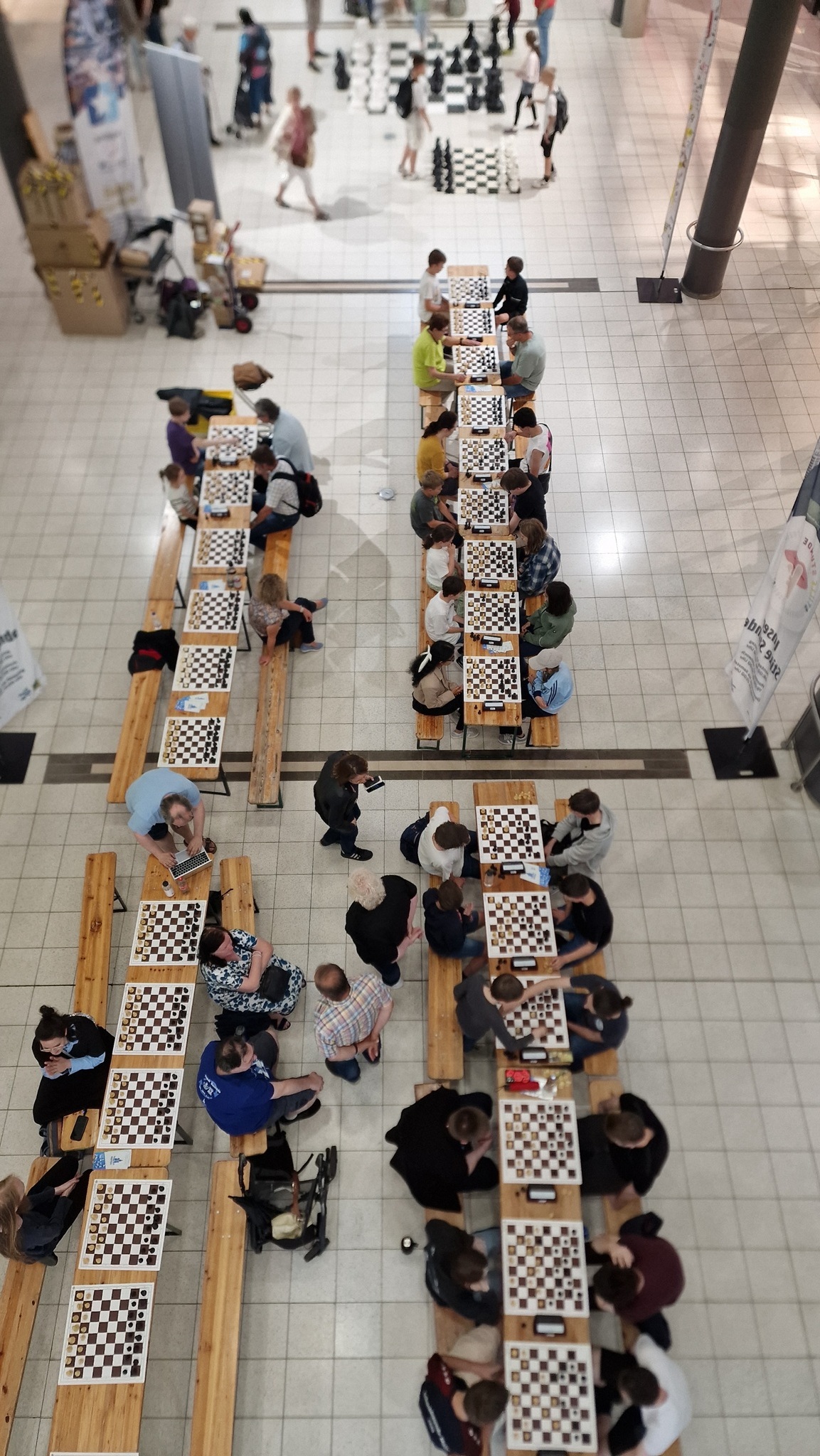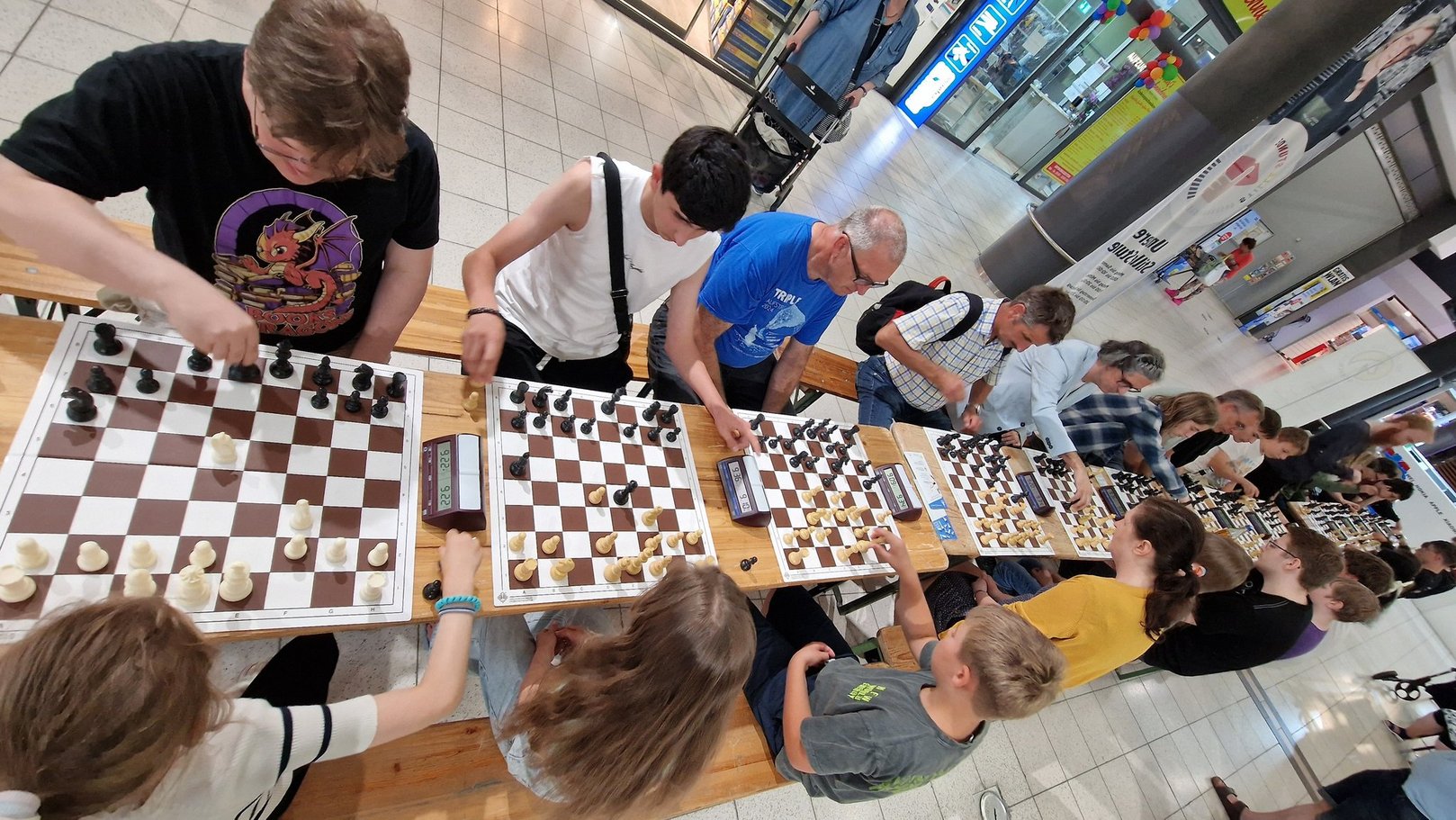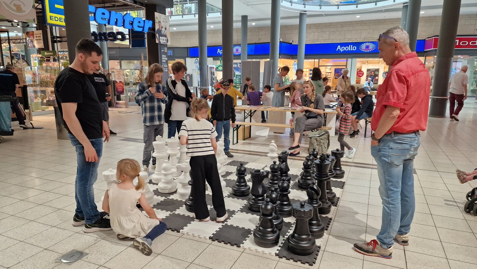 11.07.2025: Da wo man eigentlich einkaufen geht, klapperten am Freitag, zur Trainingszeit des Schachzentrums, die Schachfiguren. Kurzerhand hatten wir dieses in den Warnowpark verlegt, um mit Unterstützung der Deutschen Schachjugend und Chessy einen Schachtag in Rostock ins Leben zu rufen. Insgesamt konnten etwa 100 Teilnehmerinnen und Teilnehmer zwischen 14:00 und 18:00 Uhr begrüßt werden, die sich an unterschiedlichen Stationen ausprobieren , einfach Schach spielen oder auch am Schnellschachturnier teilnehmen konnten. Die Deutsche Schachjugend und das Schachzentrum informierten über die Möglichkeiten Schach zu spielen und Schach zu lernen, insbesondere auch im Schachzentrum Rostock. Das Turnier gewann überraschend Johannes Wilkenloh vom PSV Ribnitz-Damgarten vor Enrico Krause und Paul Peter Gorski vom gastgebenden Schachzentrum. Beste weibliche Teilnehmerin wurde Ritu Chandrasekher (Gesamtplatz 6), ebenfalls aus den Reihen des Schachzentrums. Vielleicht gibt es ja bald eine Wiederholung. Geplant ist, in den Sommerferien eventuell ein offenes Training im Warnowpark anzubieten. Interessierte können sich jederzeit im Schachzentrum melden.