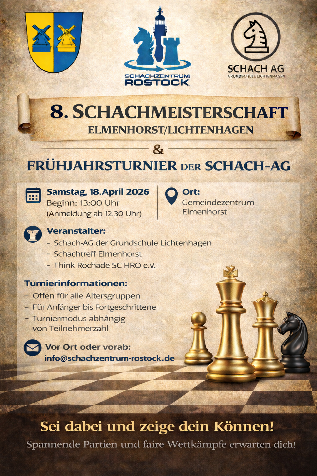 Hier gibt es Neuigkeiten aus dem Schachzentrum Rostock, wir freuen uns über Euer Interesse und Feedback...