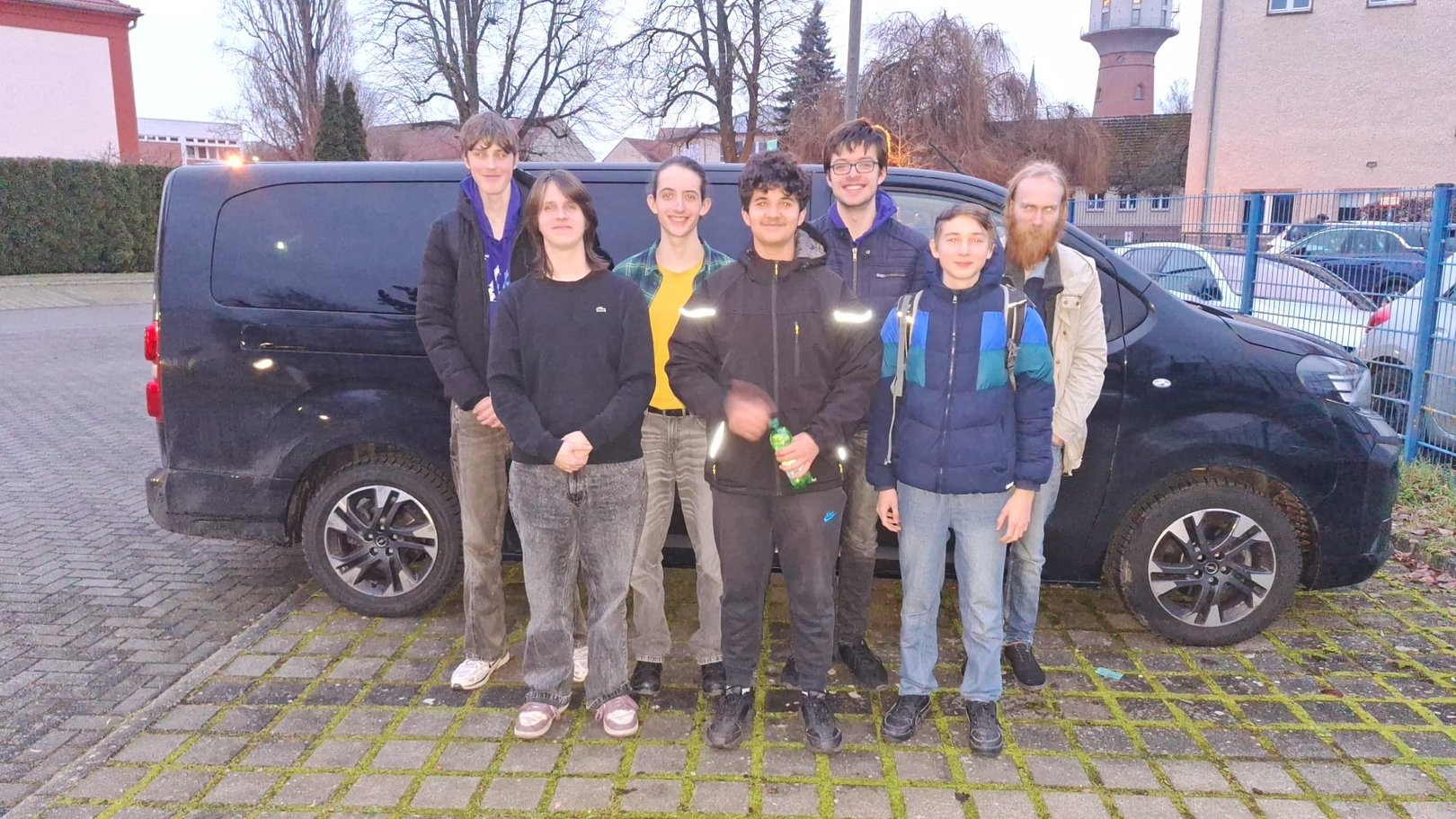 13.12.2025: Nach der Auftaktniederlage ging es zum ersten Auswärtsspiel in der Jugendbundesliga Ost nach Nauen. Fast in Bestbesetzung wollte man gegen einen der schwächeren Teilnehmer auch den ersten Sieg in der Jugendbundesliga holen. Dies gelang auch eindrucksvoll. Fabian, Enrico und Maximilian gewannen an den ersten drei Brettern, Kim spielte an Brett vier remis. I-Tüpfelchen war dann der Sieg von Julian Tank an Brett 6, sodass es am Ende 4,5: 1,5 stand. Der Transport erfolgte durch einen eigens organisierten Bus, sodass sowohl die Stimmung auf der Hin- und noch mehr auf der Rückfahrt blendend waren.