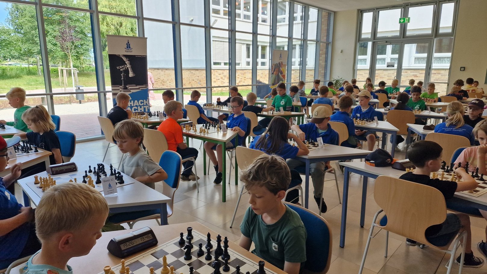 19.07.2025: Als letzte Veranstaltung vor den Sommerferien standen die Landesschnellschachmeisterschaften der Kinder und die Landesmeisterschaften der jüngsten Kinder in der u8, erstmals in Dorf Mecklenburg ausgetragen, auf dem Programm. Mit 6 Goldmedaillen, 3 Silbermedaillen und 2 Bronzemedaillen kehrten die fast 30 Kinder und Jugendlichen in das Schachzentrum zurück und waren damit mit Abstand der erfolgreichste Verein. Vor allem die Mädchen trumpften auf und gewannen durch Alina, Dimana, Leni und Ritu alle Altersklassen, außer der u14, in der wir keine Teilnehmerin am Start hatten. Hervorzuheben sind auch die beiden Goldmedaillen von Maximilian, der das Gesamturnier der u16 und u20 gewann und Eshwar, der seinen Landesmeistertitel im Normaschach auch im Schnellschach wiederholen konnte. Auch alle anderen Teilnehmerinnen und Teilnehmer erzielten fast durchweg gute Ergebnisse und haben sich jetzt eine Erholungspause in den Sommerferien verdient.