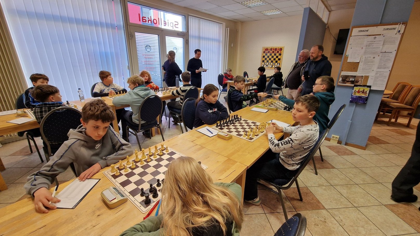 06.12.2025: Endlich geht es los. Durch die Querelen im Landesverband musste auch die Schülerliga etwas später anfangen. Der erste Spieltag stand somit erst im Dezember auf dem Programm. Mit zwei Teams in der Staffel West und einem Team in der Staffel Ost stellt das Schachzentrum wieder drei Mannschaften. Am ersten Spieltag besiegte die erste Mannschaft das dritte Team mit 3:1, Johann fuhr dabei die ersten Punkte für das Schachzentrum ein, Pascha und Dimana siegten ebenfalls. Eine Überraschung gab es an Brett 4. Carlo, der für Claas Levi kurzfristig einsprang sah sich schon auf dem sicheren Weg mit einer Dame Vorsprung. Durch einen Fehler musste er diese allerdings wieder abgeben und Sara spielte die Partie dann konzentriert weiter und konnte den Ehrenpunkt für das dritte Team erkämpfen. Eine klare Sache war auch die Partie der zweiten Mannschaft gegen die Kinder aus Stralsund in der Staffel Ost. Hier hieß es am Ende 3,5 zu 0,5. Erik Backes, Aljoscha und Filipp sorgten für die vollen Punkte, Erik Koldrack remisierte an Brett 1.