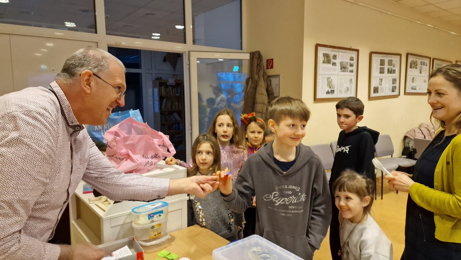 Anschließend starteten wir auch das größte Weihnachtsschachturnier in der Geschichte des Vereins. Aber Stopp. Davor gab es noch die lustige Tombola mit und von Ralf. Er verloste große Preise, die am Ende etwas anders aussahen, wie möglicherweise durch die Losinhaber gedacht. Dann ging es aber los, fast 50 Teilnehmerinnen und Teilnehmer absolvierten fünf Runden Schnellschach, wobei es auch zu kuriosen und überraschenden Paarungen und Ergebnissen kam, was auch so beabsichtigt ist. Jörg Sonnenberger führte besonnen und fehlerfrei durch das Turnier. Am Ende holte sich den Gesamtsieg wieder einmal unser Altmeister Eckhard Jeske vor Eike und Enrico. Die Frauenwertung gewann Kirsten, bei den Kindern waren Dimana und Michel sowie Marie und Eshwar erfolgreich, den u18 Titel konnte sich die erst achtjährige Sara bei den Mädchen und Paul bei den Jungen sichern. Uschi und Ralf wurden als beste Senioren geehrt.